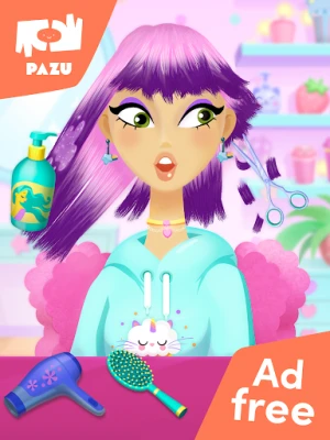 Enjoy the diverse worlds our hair cutting game has to offer unique hair colors, gradients, special fashion items, and accessories: necklaces, earrings, hair accessories, glasses, tops, and much more in this hair salon game for girls